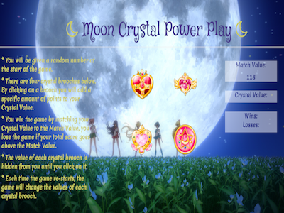 This is a guessing game using numbers, similar to the game hangman, but instead of letters the player will guess with numbers. There will be four crystals displayed as buttons on the page. The player will be shown a random number at the start of the game. When the player clicks on a crystal it will add a specific amount of points to the player's total score. The player wins the game if their total score matches the random number and the player loses the game if their total score goes above the random number. The amount of points each crystal adds is not shown to the player, but their total score is displayed and updated after each crystal is clicked. The number of games won and lost will be displayed. If the player successfully matches their total score to the random number they get 1 win, if the player's total score is above the random number the player get 1 loss, either way the game restarts. When the game is restarted, the player will be shown a new random number, all the crystals will now have 4 different hidden values, and the player's total score is reset to 0.