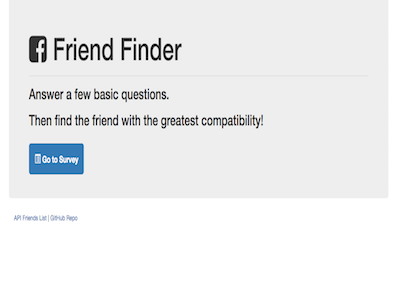 This is a compatibility-based "Friend Finder" application. (Basically a dating app) The application takes in results from users' surveys then compares their results against all other users who have completed it. The application displays the name and picture of the user with the best match overall.